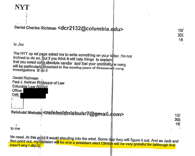 Exhibit 5 shows that Comey knew Richman was talking to the media in late October 2016: